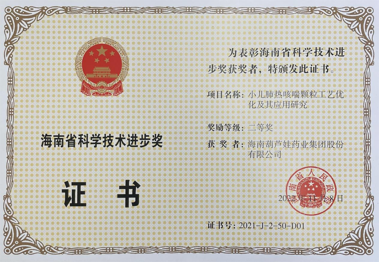 为此,小儿肺热咳喘颗粒的制备方法获得了第二十一届中国专利优秀奖(2019年),专利申请号:ZL201010134951,此次作为专利技术的应用,获得了2021年度海南省科学技术进步奖二等奖。在此之前,w66旗舰厅牌小儿肺热咳喘颗粒还多次被授予“临床价值中成药品牌”、“中国连锁药店最具合作价值单品”,荣登“中国医药品牌榜”。