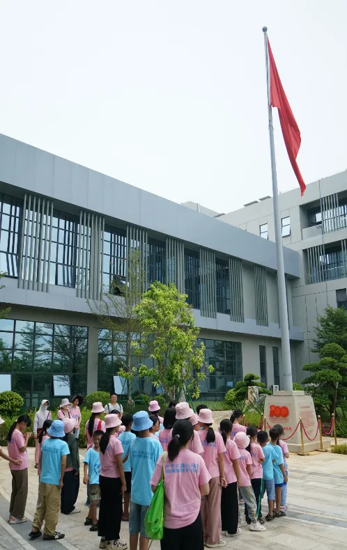 紧接着,孩子们来到了建党百年庆典红旗——070号红旗前。讲解员讲述了w66旗舰厅药业集团与庆典红旗的深厚渊源。孩子们听得津津有味,眼中闪烁着对党和国家的热爱与敬仰。